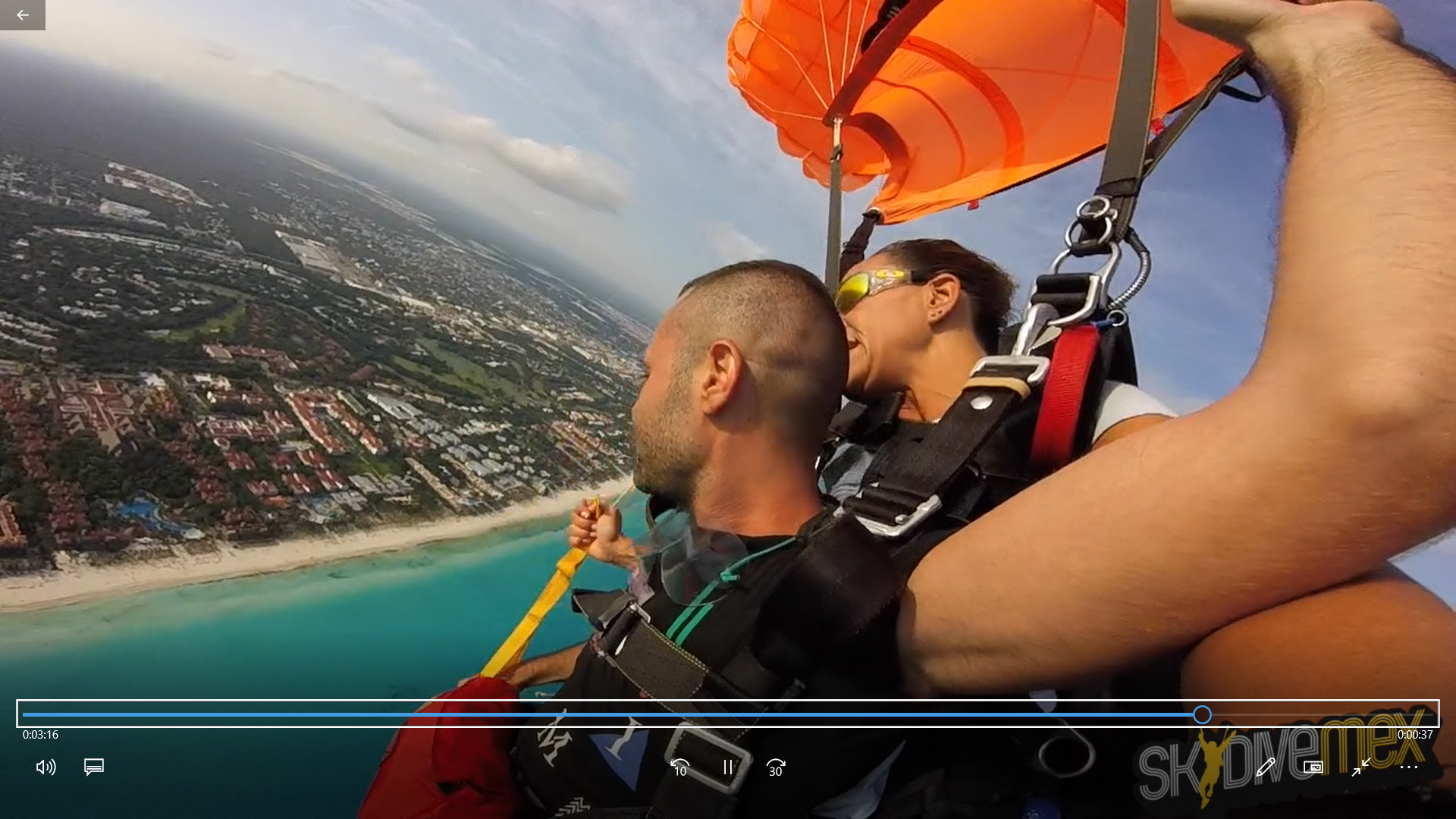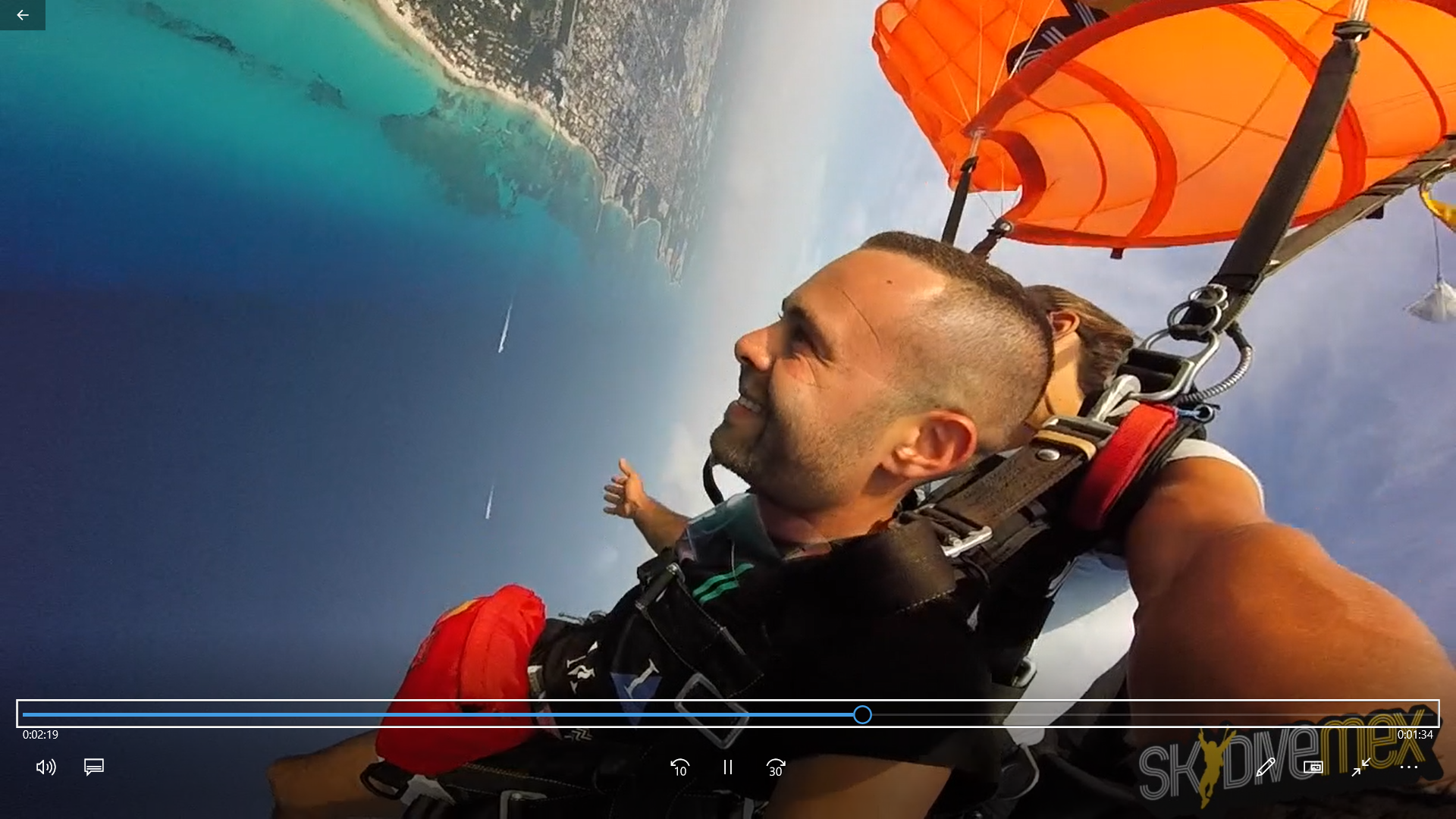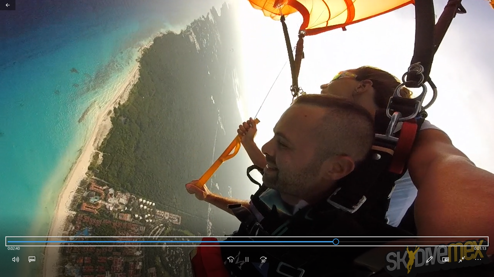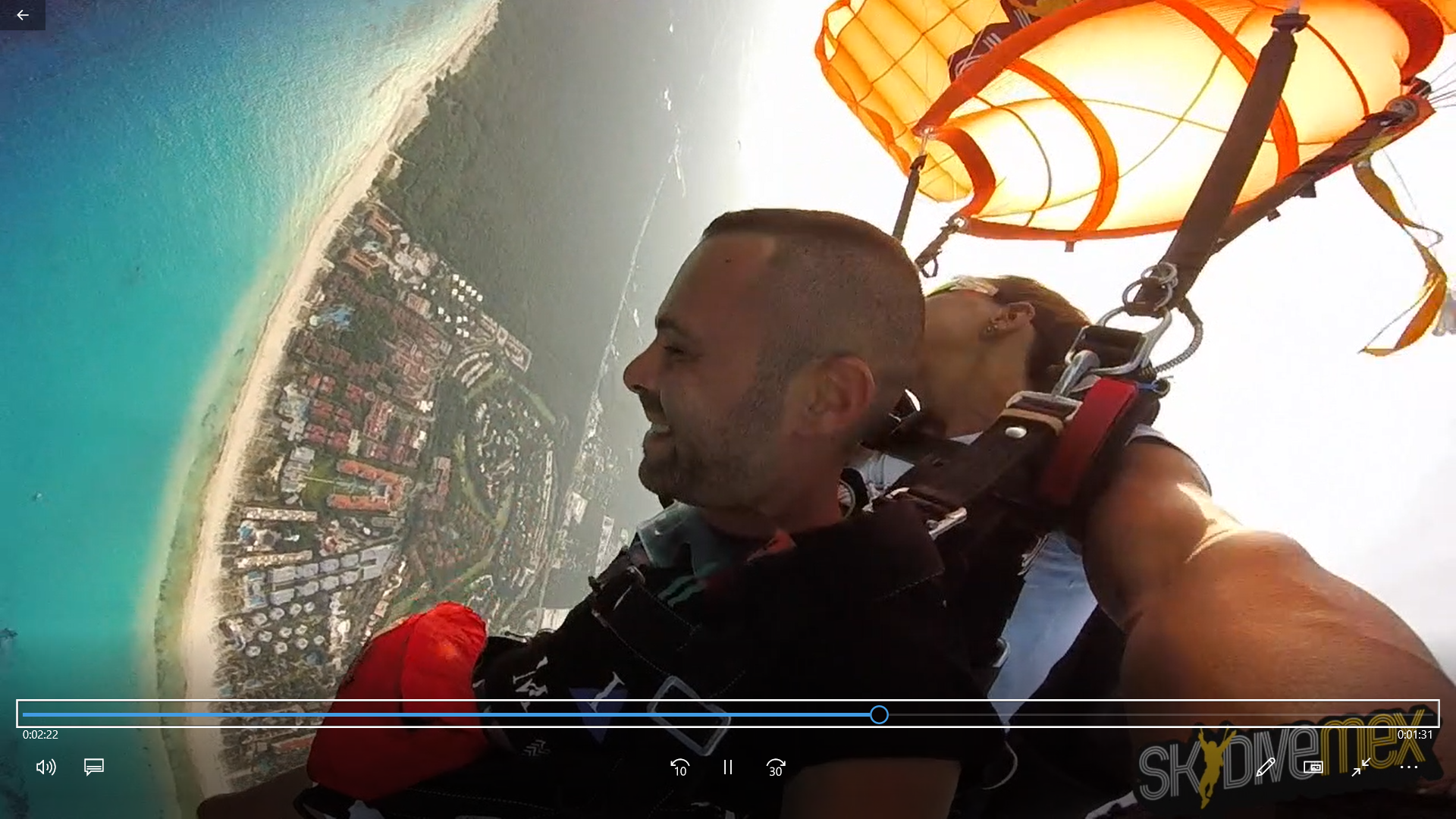 This skydive includes a 40-second free fall from a distance of about 10,000 feet, and an 8-minute hover with a parachute. While hovering, the instructor will assist in guiding the parachute to a soft landing on the beach
